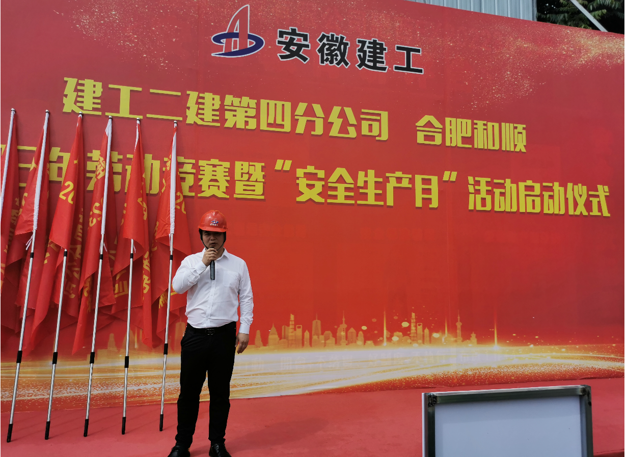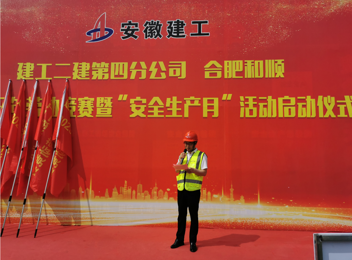 本次勞動競賽旨在充分調(diào)動廣大建設(shè)者的積極性,引導(dǎo)廣大職工充分發(fā)揮勞模精神、勞動精神、工匠精神,安全、優(yōu)質(zhì)、高效地圓滿完成施工任務(wù)。活動現(xiàn)場,第四分公司生產(chǎn)副經(jīng)理周文建作動員講話,合肥和順總經(jīng)理沈印、越秀地產(chǎn)項目總經(jīng)理董大澤分別發(fā)言,第四分公司質(zhì)量副經(jīng)理劉韌宣讀2023年勞動競賽實施方案,參賽項目代表付奎表態(tài)發(fā)言,參加活動的領(lǐng)導(dǎo)為各參賽項目授旗。