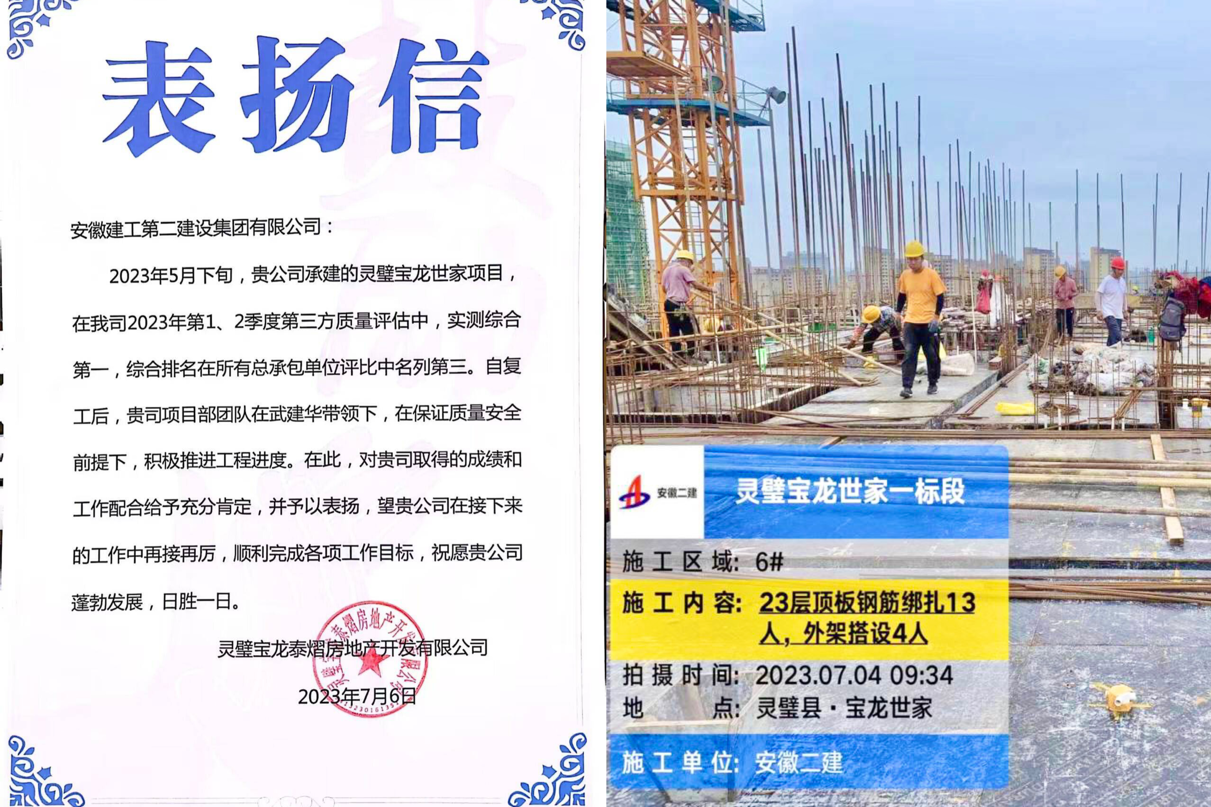 聚焦勞動競賽黨建引領(lǐng),帶出項目隊伍“新氣象”。在勞動競賽實施過程中,項目部緊緊圍繞競賽目標(biāo)開展“三號聯(lián)創(chuàng)”,結(jié)合實際設(shè)立“黨員先鋒崗”“工人先鋒隊”和“青年突擊隊”,有效提升組織創(chuàng)造力、凝聚力和戰(zhàn)斗力。在重點任務(wù)、關(guān)鍵節(jié)點和重要環(huán)節(jié)中,充分發(fā)揮“兩個作用”,為項目建設(shè)提供“紅色動力”。在寶龍集團今年一、二季度第三方質(zhì)量評估中綜合排名位列前三,項目部積極申報了省住建廳2023年“紅色工地”試點項目,持續(xù)提升黨建引領(lǐng)推動項目建設(shè)。