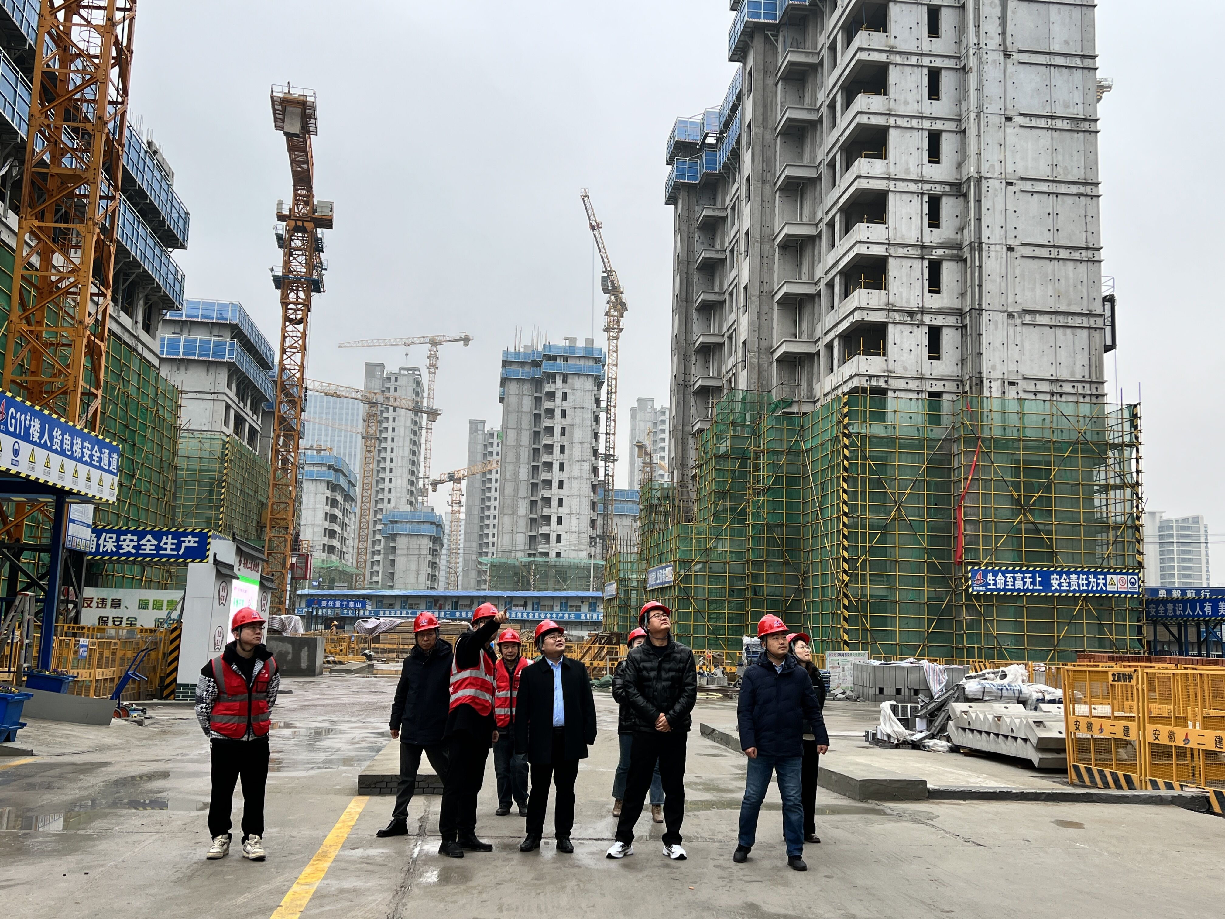 12月13日上午,安徽建工集團團委委員、安徽路橋團委書記、黨委工作部副主任王東一行赴建工二建肥西FX202234號地塊項目開展集團“青年文明號”工程創(chuàng)建現(xiàn)場驗收。
