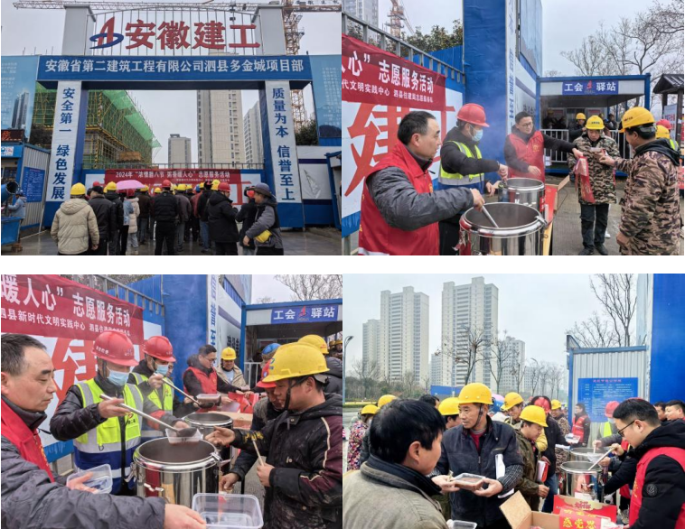 1月18日,第一公司泗縣多金城項目部聯合主管部門開展了“濃情臘八節 粥香暖人心”公益志愿服務活動,項目部連續三年開展此類公益活動,每年的臘八前夕項目管理人員都會提前準備糯米、小米、紅豆、蓮子等制作食材,用兩個多小時精心熬制兩大桶熱騰騰的臘八粥,為堅守在崗位上的工人送上溫暖和關懷。