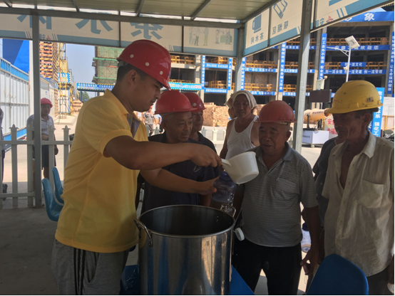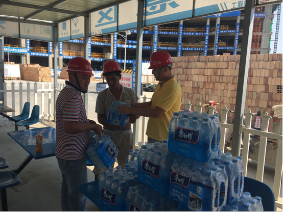 生物島一期項目部深入貫徹落實上級領導關于高溫作業有關要求以及防暑降溫用品及時發放的指示,由項目團支部牽頭,項目各部門積極配合,為一線勞務作業人員分發礦泉水、綠茶、綠豆湯、十滴水等防暑降溫用品,并傳授預防中暑技巧,調整高溫作息時間,確保高溫作業環境下一線作業人員能有效防止意外發生,為項目的順利推進保駕護航。