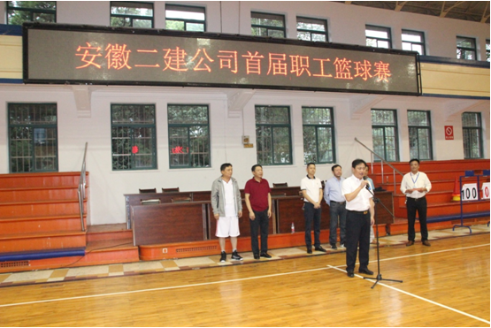 總經理許業(yè)勇宣布安徽二建首屆職工籃球賽開幕