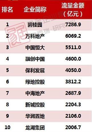 克爾瑞的數據,碧桂園7287億元蟬聯第一,萬科6069億元重回行業第二,恒大5511億元的位居第三。