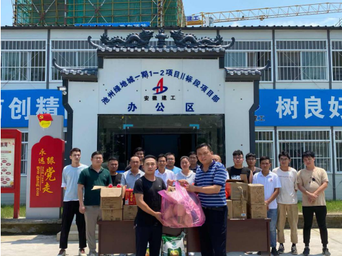 仇多維一行為一線職工送上綠豆、人丹、茶葉、肥皂、洗手液等防暑降溫及消毒物品,叮囑項目經(jīng)理在做好疫情防控常態(tài)化工作的同時,合理安排高溫工作時間,克服惡劣天氣影響,加強防暑降溫知識的宣傳教育,確保夏季施工安全。