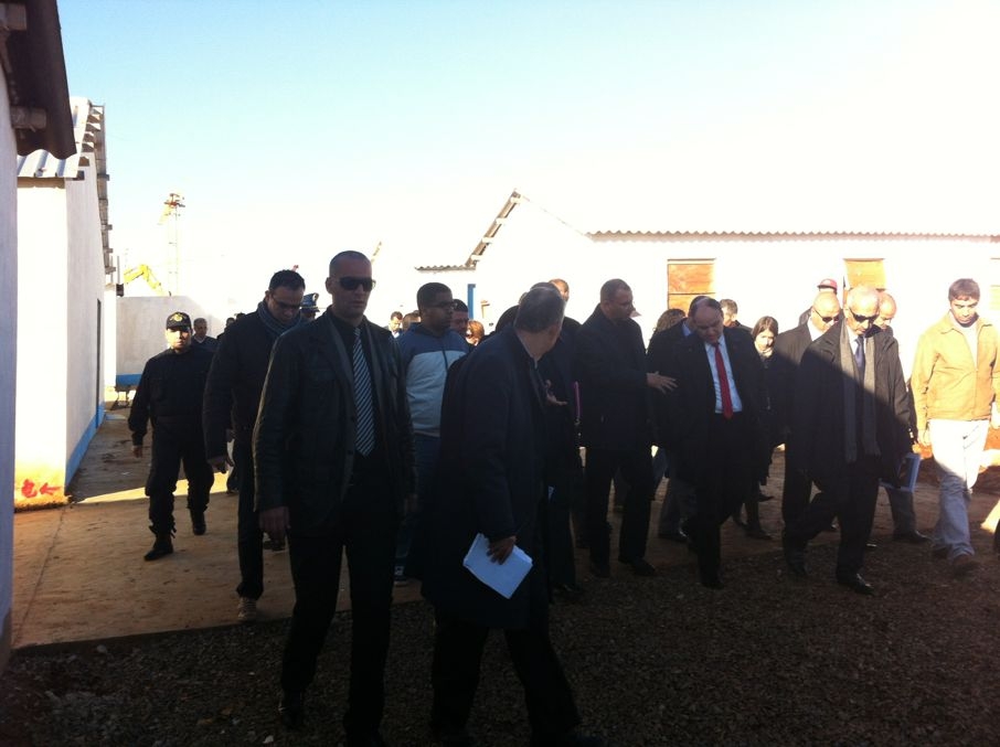 2013年12月10日,阿爾及利亞奧蘭省新任省長阿布戴勒卡尼•扎蘭一行在當地業主及中鐵十九局相關領導的陪同下,親臨安徽二建承建的本弗黑哈和布特來力斯鎮600套住房工程現場,對工程前期砼攪拌站建站、臨設搭建、場地平整等工作給予了肯定,并要求依據合同、施工圖、規范等確保工程質量,加快施工進度,做好安全文明施工。