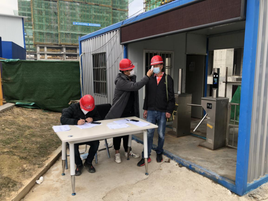 一線人員進入工地,測量體溫