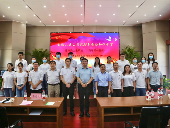 今年六月是第21個“全國安全生產(chǎn)月”,為了貫徹落實活動主題“遵守安全生產(chǎn)法 當好第一責任人”,用以賽促學、以活動促宣傳的方式提高廣大職工的安全意識,6月17日上午,公司工會牽頭,與安全管理部聯(lián)合舉辦了安徽二建2022年安全知識競賽活動。公司黨委副書記、總經(jīng)理李建成,黨委副書記、工會主席王軍出席活動,黨委委員、副總經(jīng)理葉和永,安全總監(jiān)、安全管理部主任曹建,工會副主席、女工委主任王俊出席并擔任評委。