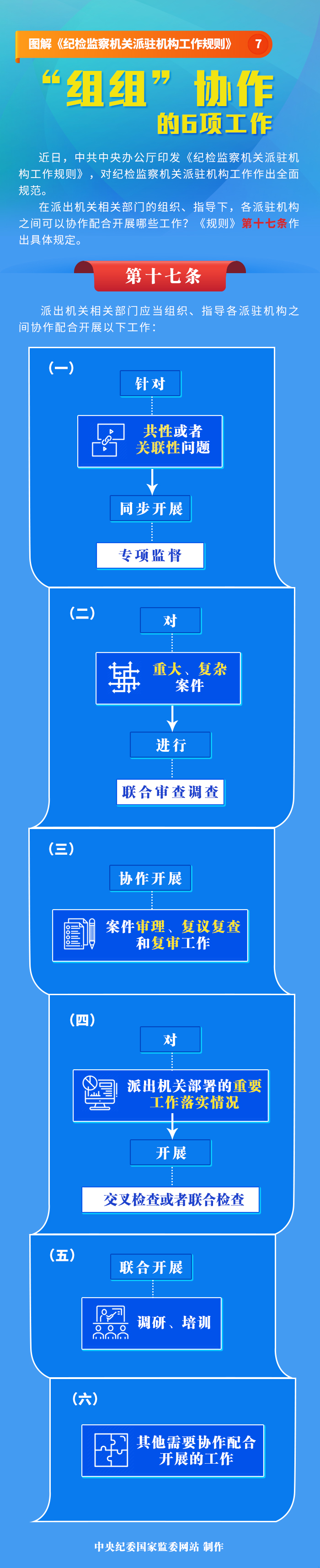 第十七條 派出機(jī)關(guān)相關(guān)部門應(yīng)當(dāng)組織、指導(dǎo)各派駐機(jī)構(gòu)之間協(xié)作配合開展以下工作:
